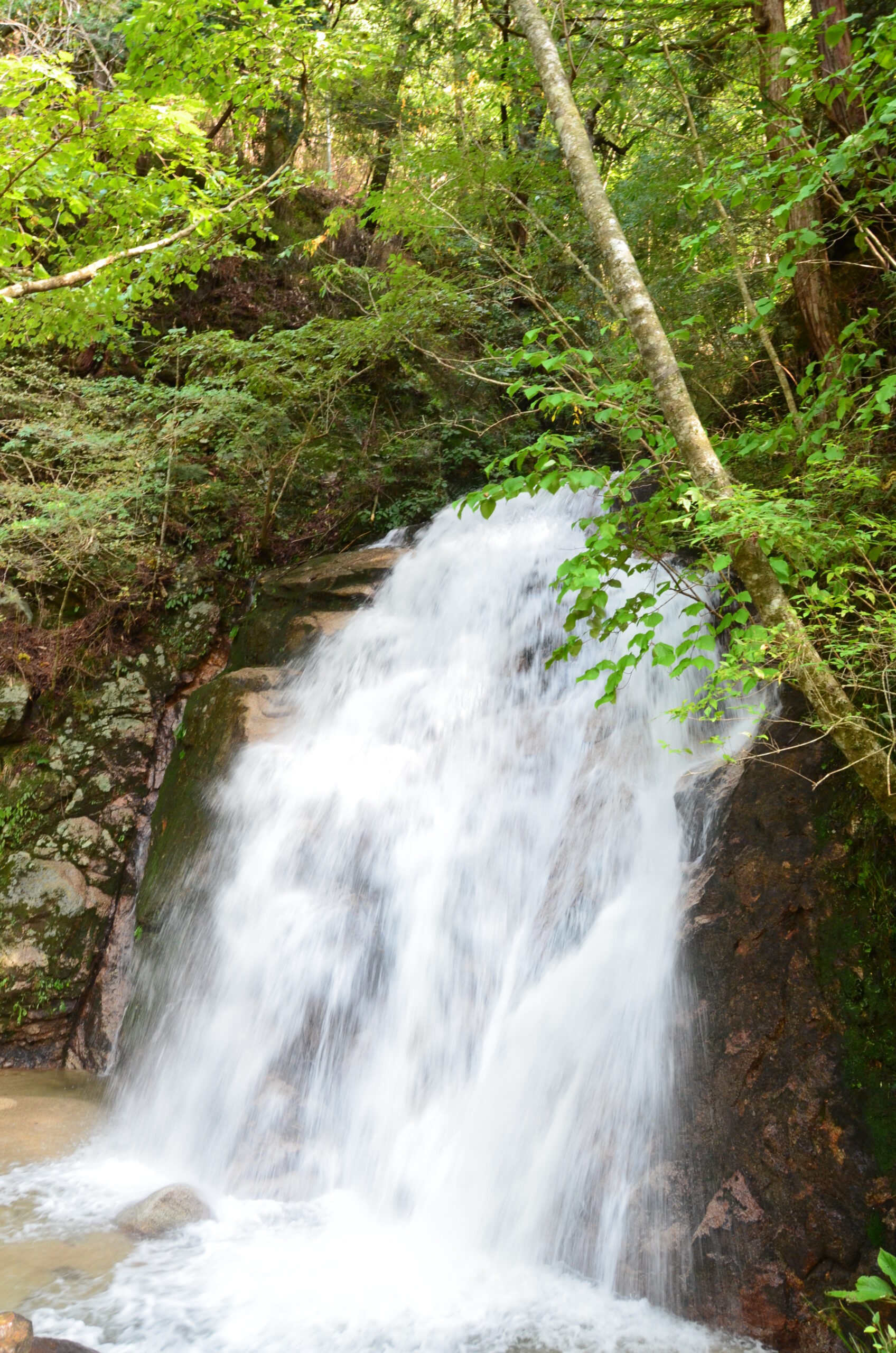 「男滝」は木曽川の支流・男だる川にかかる分岐瀑で、落差は10mあります。「女滝」は落差12mで、途中に段差を持つ二段の段瀑です。