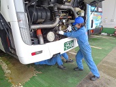 車庫内に専用工場を併設し、自動車整備会社と年間整備契約を結び、確実な車両整備を行っています。全車両毎月点検を行い定期点検は車検管理システムにて管理しています。
