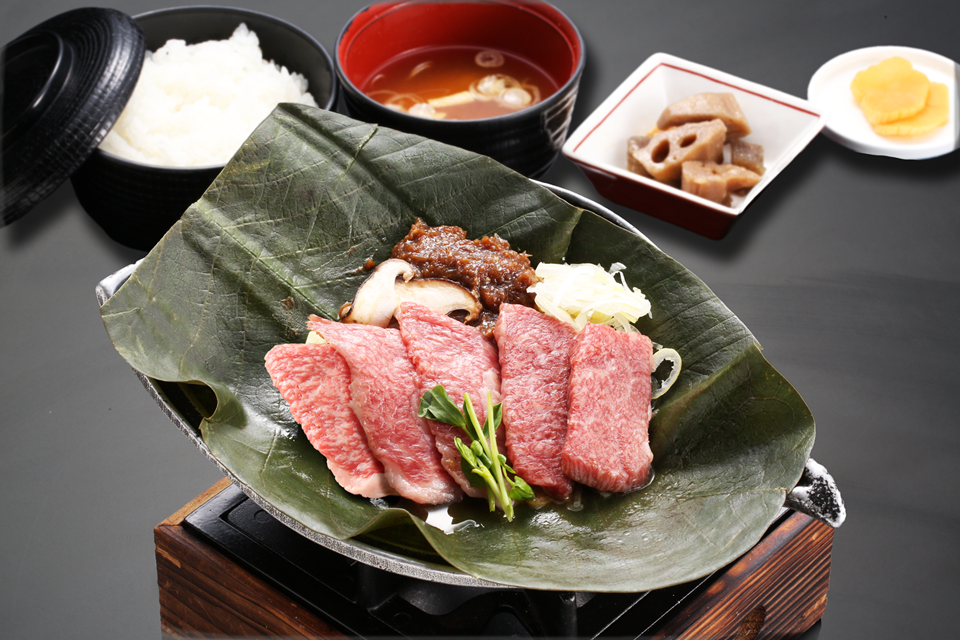 このメニューは、岐阜県飛騨地方の伝統郷土料理「朴葉(ほうば)みそ」に、ブランド牛「飛騨牛」を贅沢に添えた逸品です。