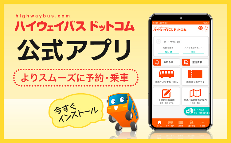 ※ハイウェイバスドットコムで決済の場合500円割引!(WEB割)