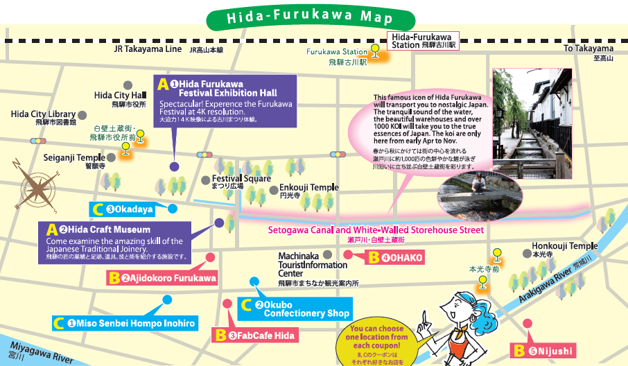 4)その後は古川の町並みを散策!お店に着いたらクーポンを渡して特典ゲット!
