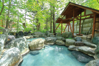 乗鞍岳のふもとから湧き出る、奥飛騨天然温泉。原生林に広がる16もの天然温泉が人気です。