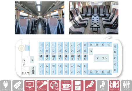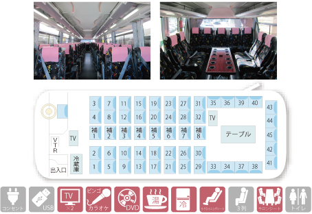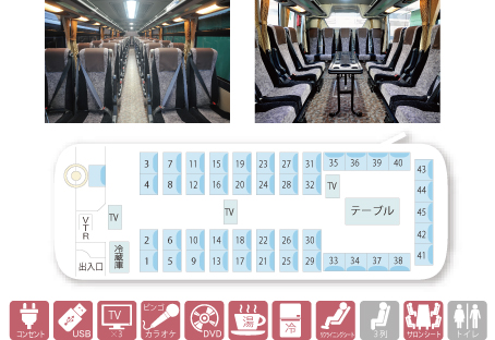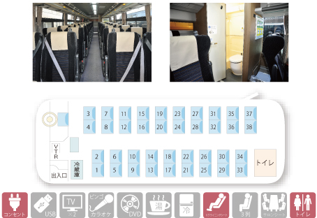 | エアロエース(トイレ付) | 大型 | 38 | 0 | 38 | 2台 | なし | 2台 | 2台 | トイレ付 |