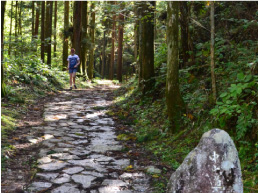 馬籠宿~妻籠宿をつなぐ全長約9km、3時間程度のハイキングコースです。かつて侍が歩いた歴史を感じさせる石畳の道や峠の茶屋、美しい農村風景など素朴な自然を楽しむこともできます。