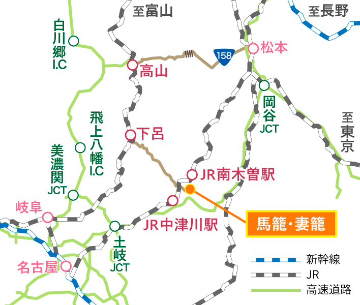高山濃飛バスセンター下呂バスセンター・下呂駅前馬籠・妻籠