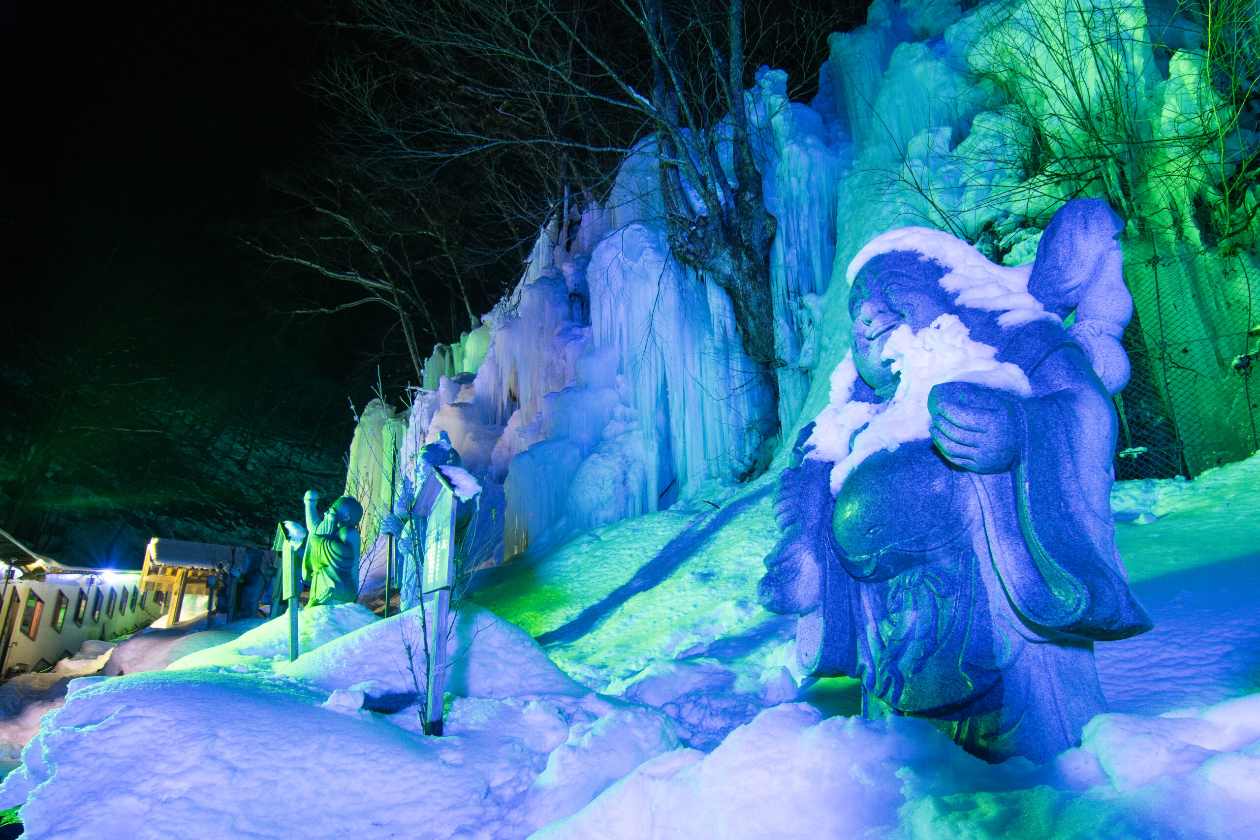毎年2月には結氷した滝を幻想的にライトアップする「平湯大滝結氷まつり」が開催されます。奥飛騨の凍りつくような寒さと大自然が織りなす冬ならではの景観をお楽しみください。